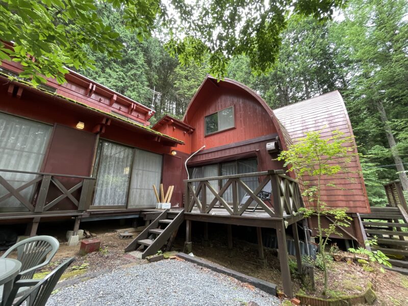 安曇野市穂高有明・標高800メートルの森林に建つカナディアンシダーハウス、4SLDK(築41年)、値下げのお知らせです。