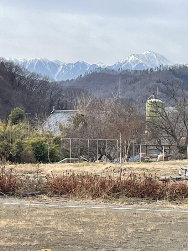 西に北アルプス、南側は水田、北側は緩やかな里山と穏やかな空気が流れています。