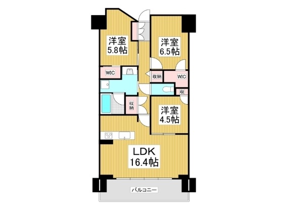 3LDK 洋 6.5 / 5.8 / 4.5 LDK 16.4 |