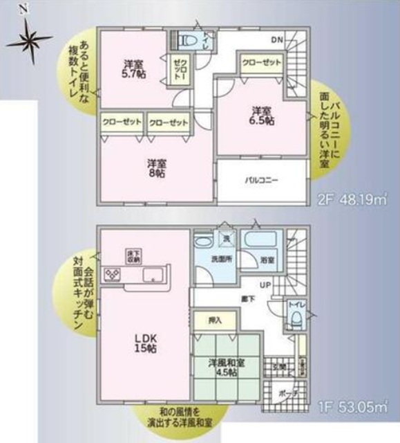 | 間取り | 4LDK | 間取り内訳 | 和 4.5 洋 8 / 6.5 / 5.7 LDK 15 | 築年月 | 2026/1 |