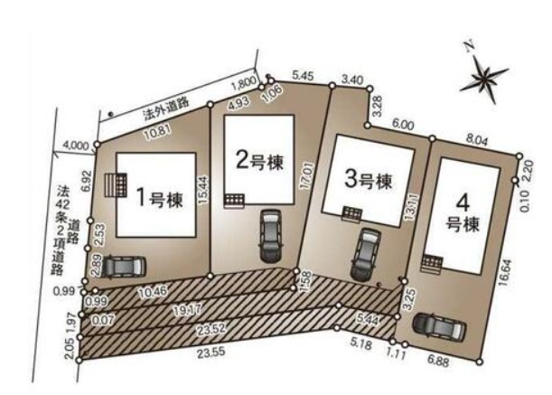 号棟番号:2号棟 総戸数:4戸 工事完了予定年月:2025年12月 2号棟 塩尻市大門八番町 第3 【法令】宅地造成工事規制区域 準防火地域【その他制限事項】容積率:前面道路幅員制限 土地面積に協定通路約38.33平米(うち路地状部分約24平米)を含む 敷地北側の一部は幅員約1.8mの法外通路に接しています 建物面積に別途ルーフバルコニー約4.86平米有り |