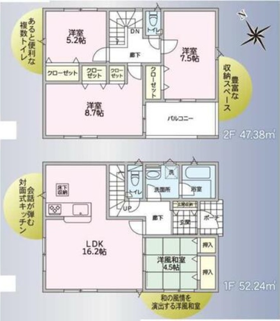 | 間取り | 4LDK | 間取り内訳 | 和 4.5 洋 8.7 / 7.5 / 5.2 LDK 16.2 | 築年月 | 2026/3 |