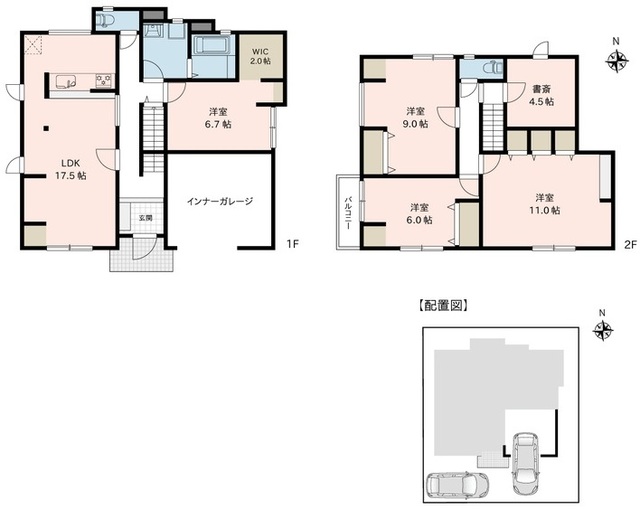 | 担当からのコメント | 南側道路に面していているので、室内の日当り良好です。17.5帖のLDKで家族団らんのひと時を!2帖のWICがあり収納にゆとりがもてます。2階にある4.5帖の書斎は仕事や勉強に集中できます。インナーガレージ付で車に雨風が当たるのを防げます。 | ||||